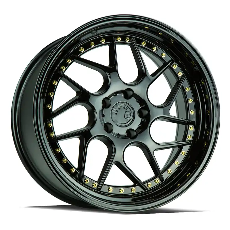 Aodhan DS01 19X9.5 5X114.3 +22 Offset Wheel – Gloss Black W /Gold Rivets