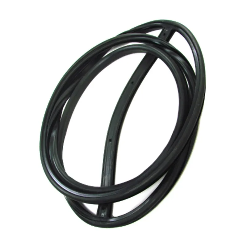 This windshield seal has the division bar for the split window. This application goes first on the body then the glass is placed in the opening.It is a standard black gasket without trim groove.Made from ozone resistant EPDM rubber and from the same